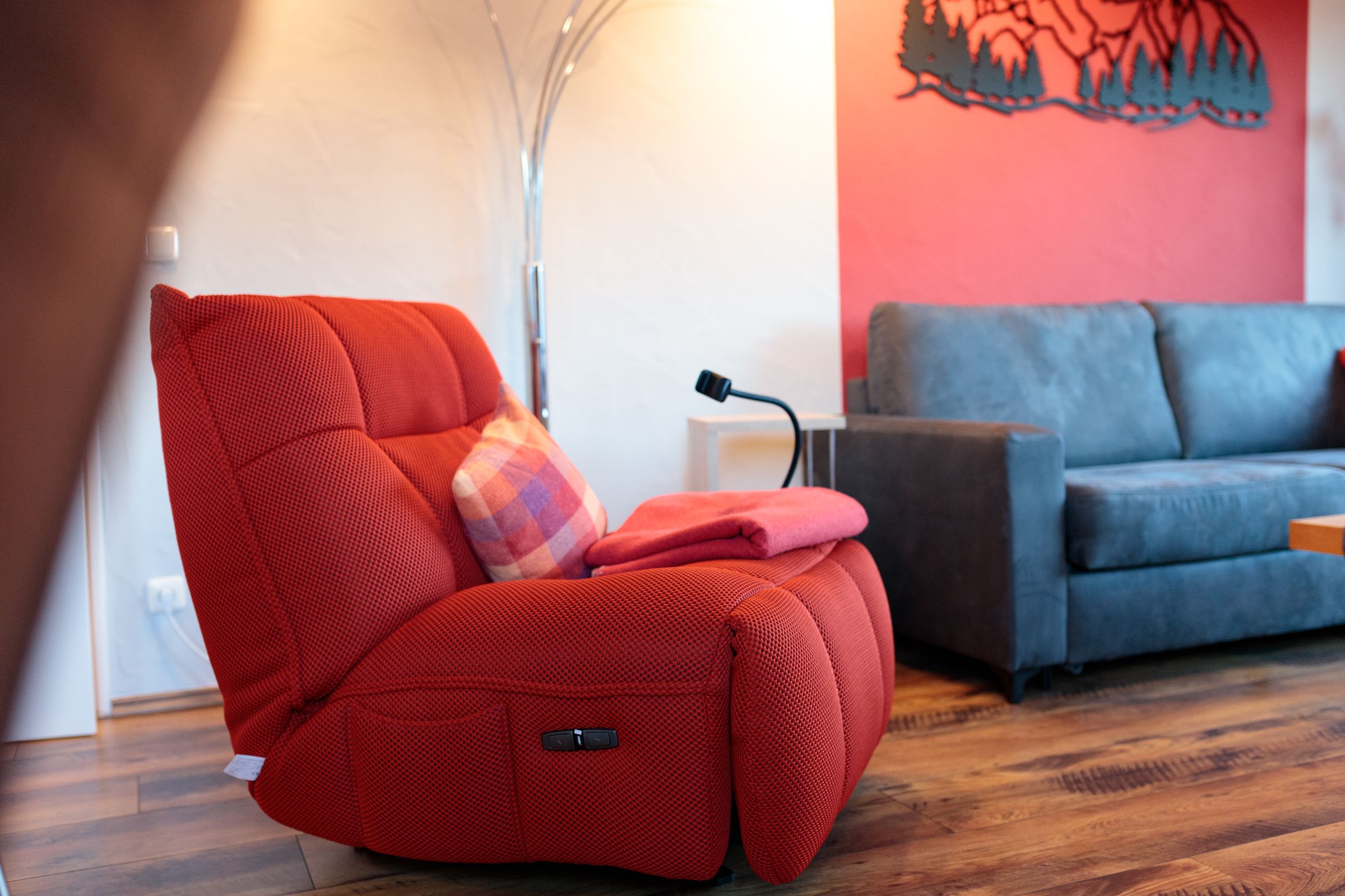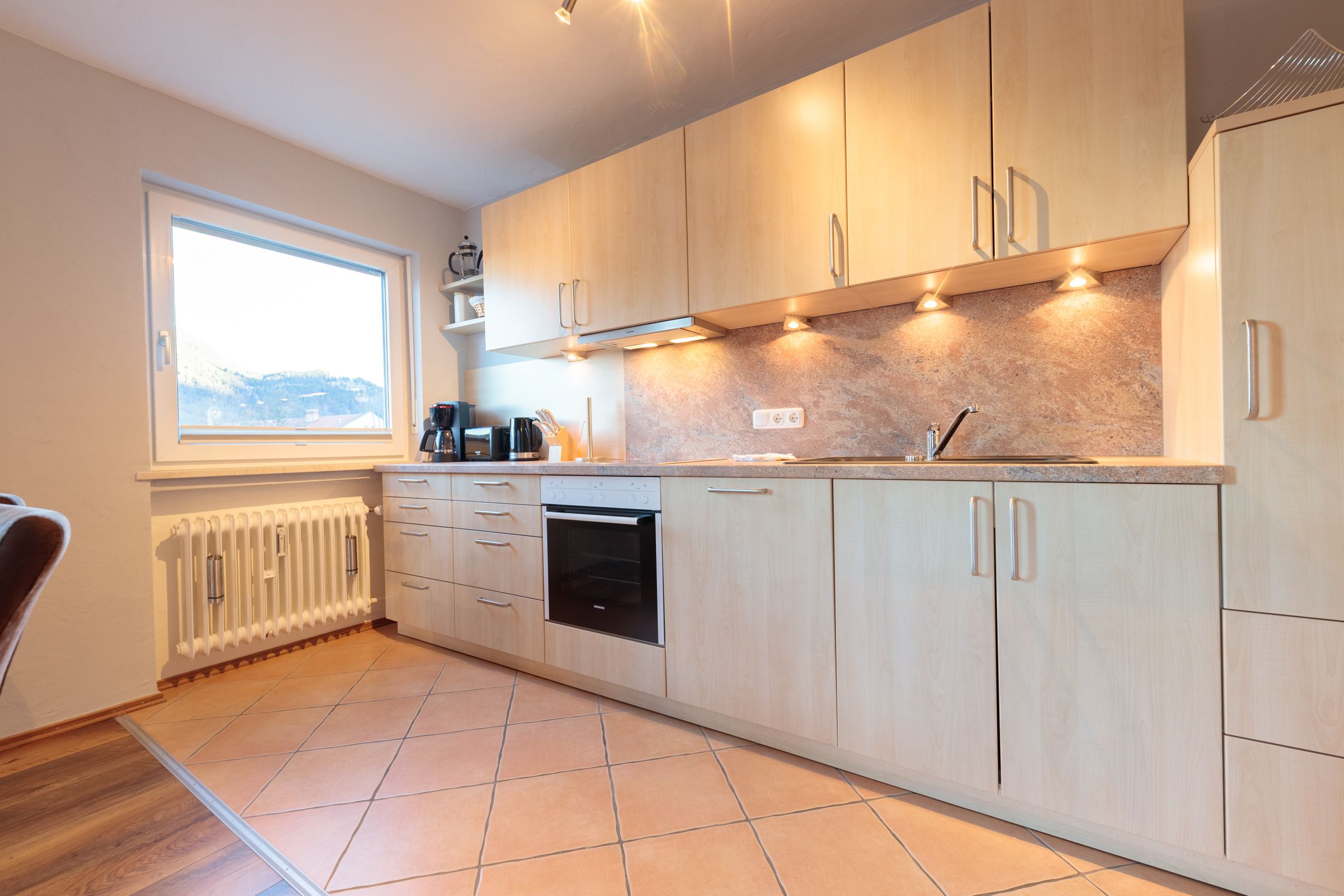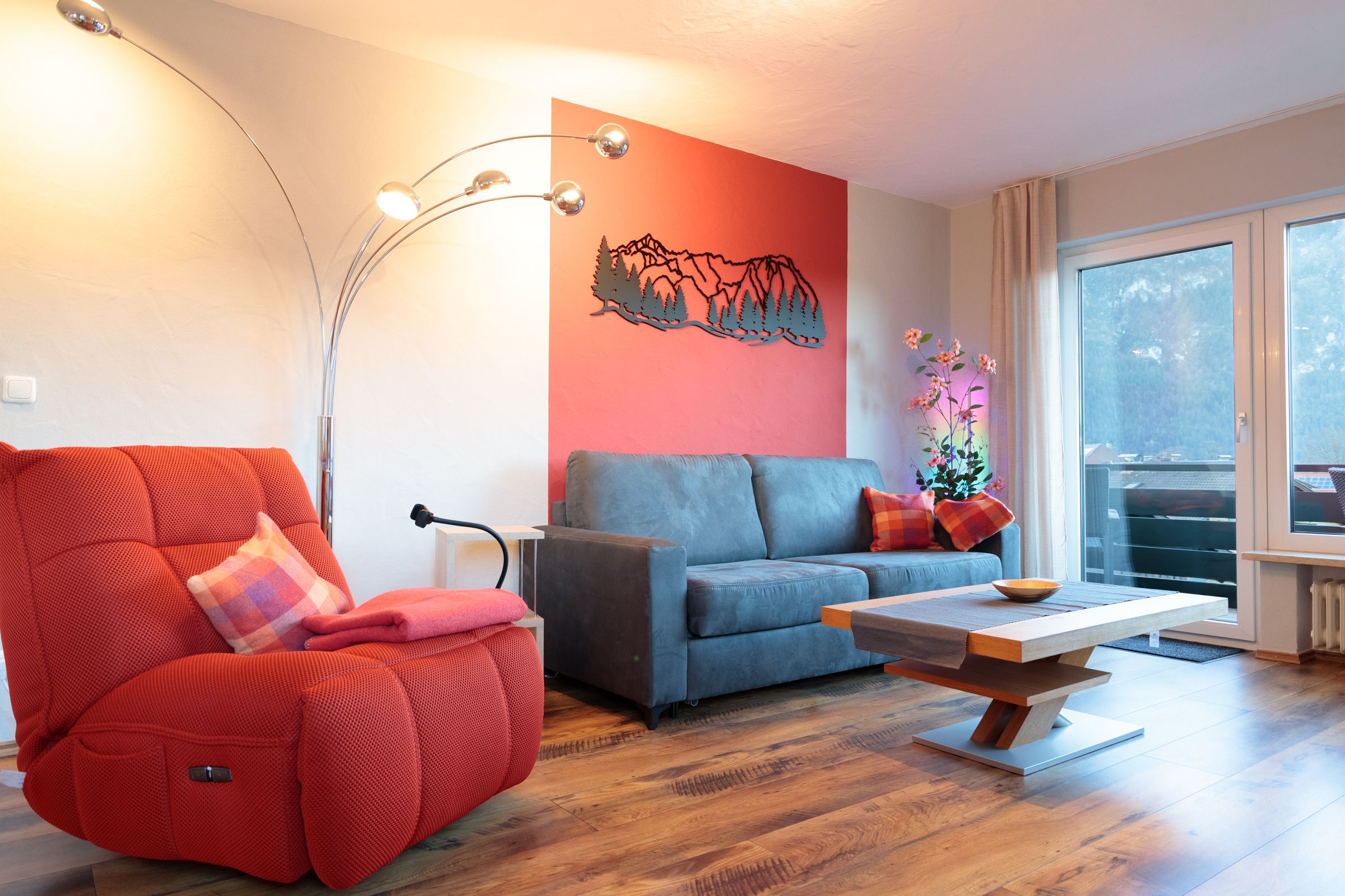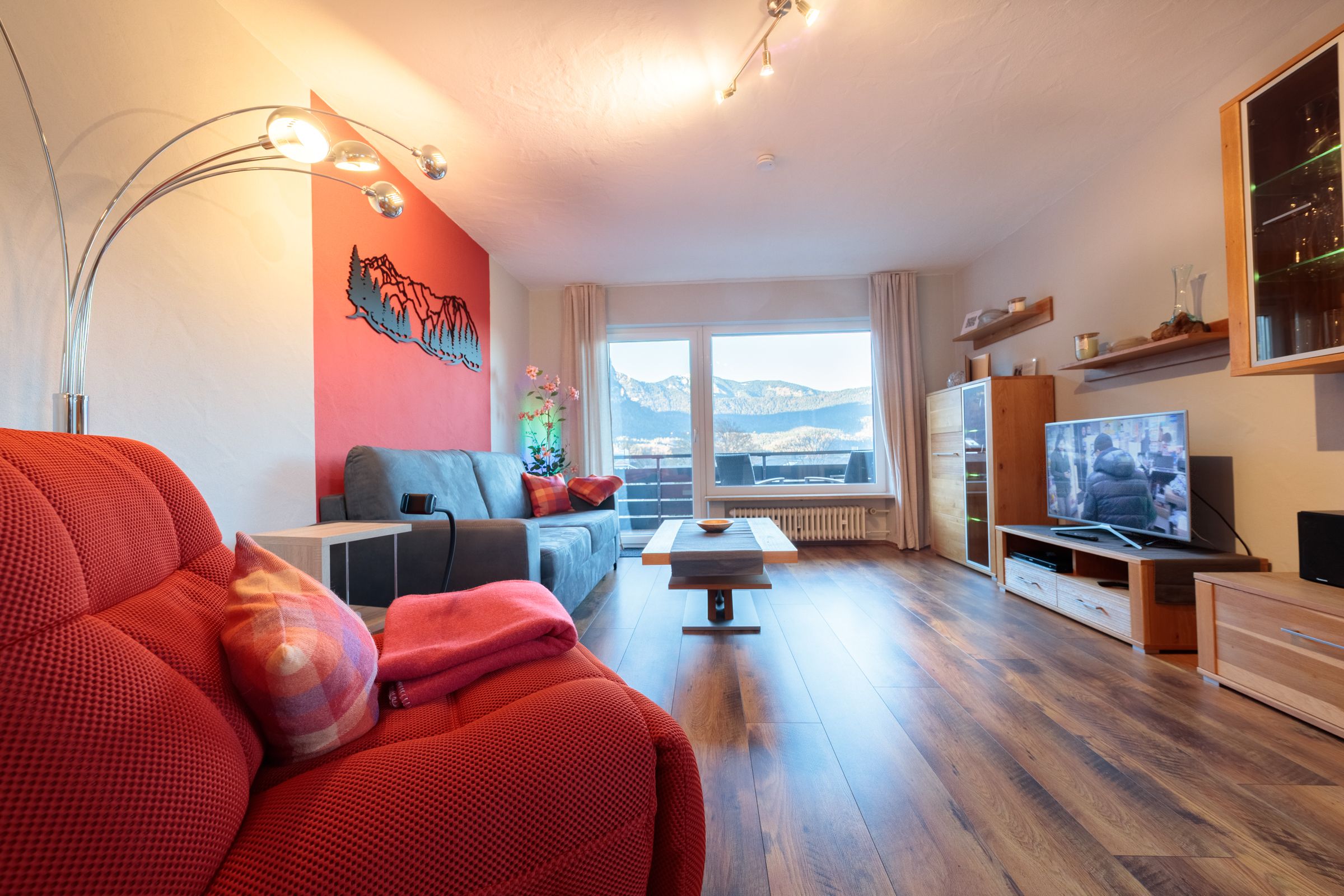 Der großzügig offene Koch- und Wohnbereich ist nicht nu...Weiterlesenr bestens und stimmig ausgestattet, sondern eröffnet Ihnen auch noch ein atemberaubendes Bergpanorama. Entspannen Sie auf hochwertigen Möbeln und erfreuen Sie sich an dem geräumigen Balkon mit Außenmobiliar und Blick auf die umliegende Gebirgskette.