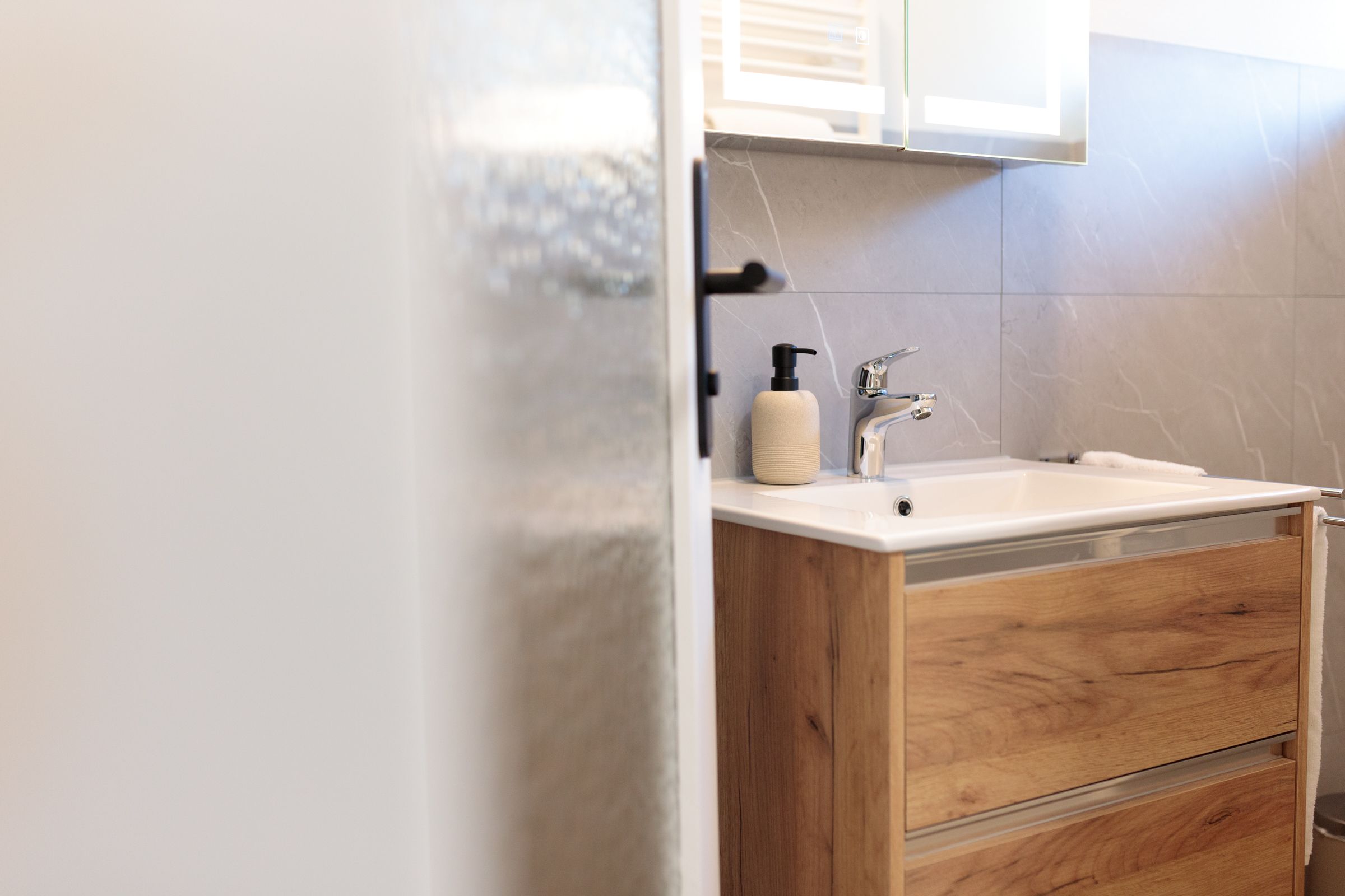 Die praktische Küchenzeile ist mit zwei Herdplatten und einem Kühlschrank ausgestattet und bietet alles, was es für die unkomplizierte Selbstversorgung braucht. Das separate Badezimmer mit Dusche, Toilette und Waschbecken ergänzt das Apartment funktional und modern. Ein besonderes Highlight ist der Balkon, der zusätzlichen Raum im Freien bietet und den Aufenthalt angenehm abrundet. „Frühlingserwachen“ ist ideal für Paare oder Alleinreisende, die Wert auf Ruhe, Komfort und eine persönliche Wohlfühlatmosphäre legen und gleichzeitig die Vorzüge des Hauses „Heu22“ genießen möchten – ein Ort, an dem sich jeder Moment entspannt und leicht anfühlt.Weniger lesen