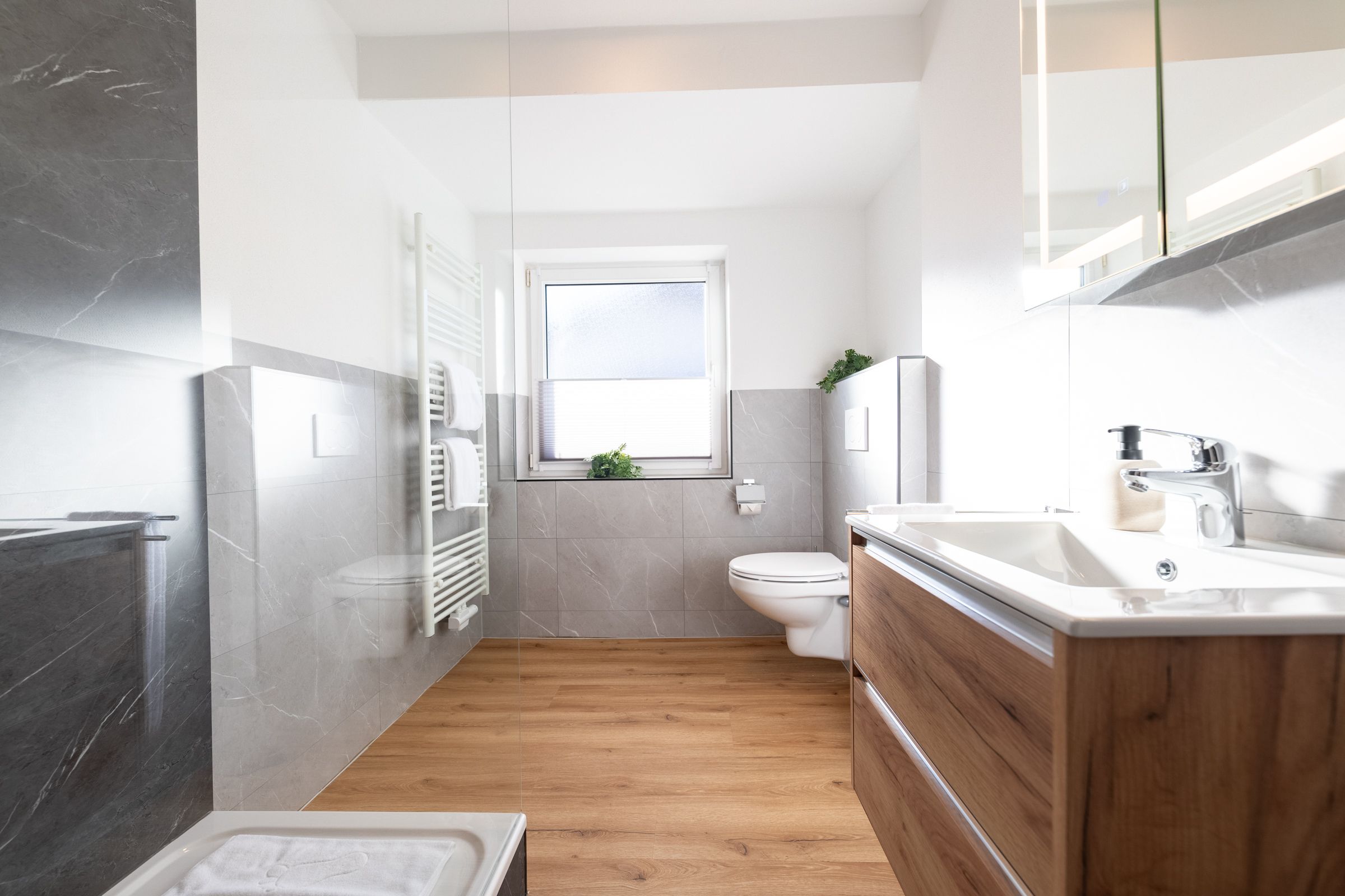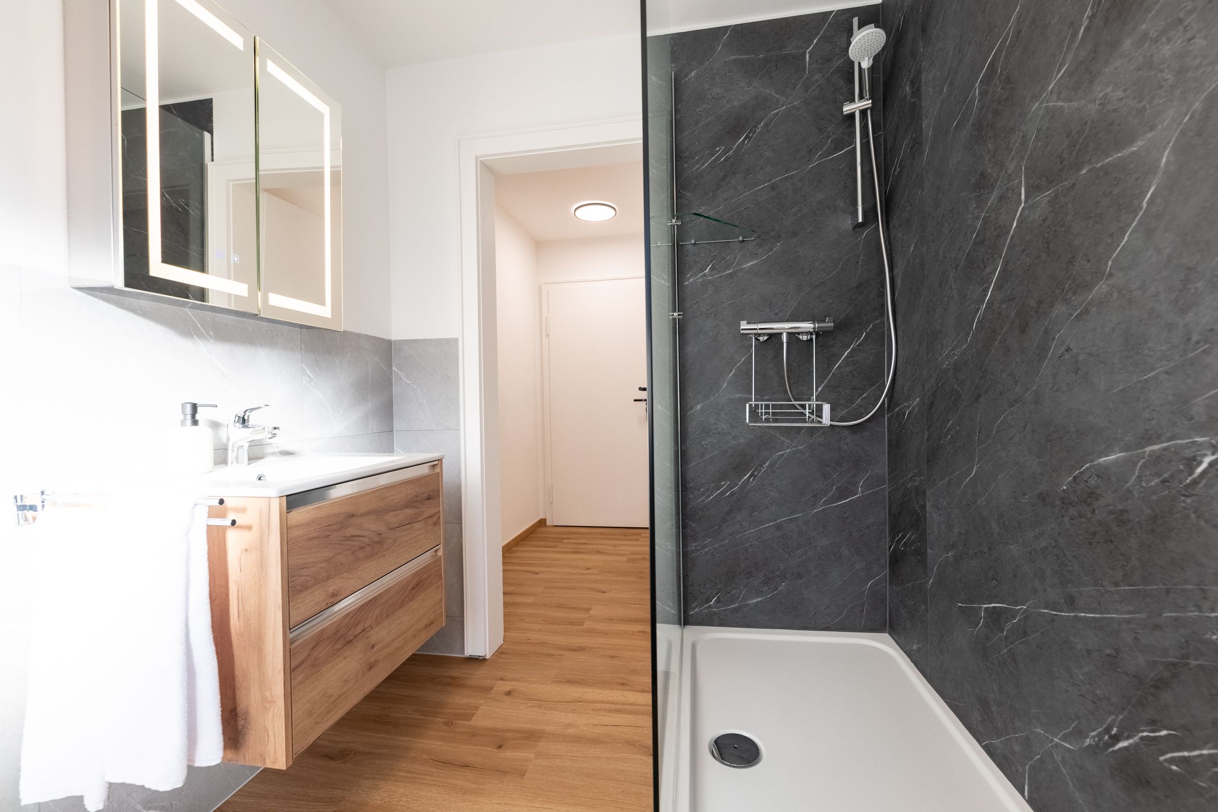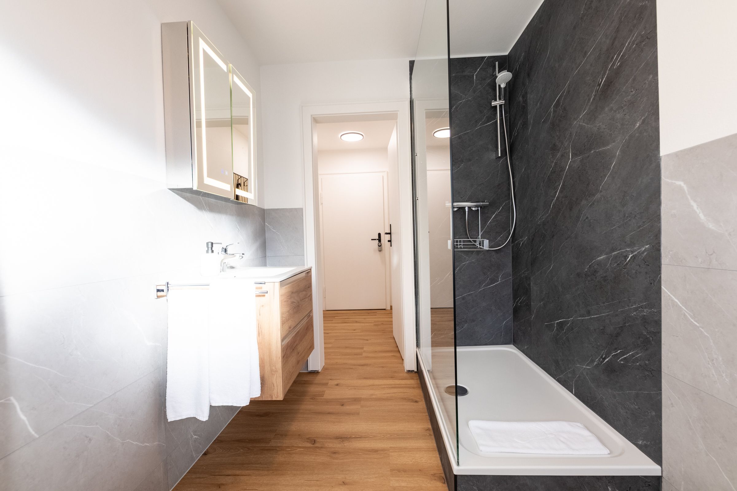 Die gut integrierte Küchenzeile ist mit zwei Herdplatten und einem Kühlschrank ausgestattet und bietet alles, was es für die unkomplizierte Selbstversorgung benötigt. Ergänzend verfügt die Wohnung über einen Balkon mit Bergblick, der den Wohnraum angenehm erweitert und zu ruhigen Momenten an der frischen Luft einlädt. Das moderne, großzügig gestaltete Badezimmer überzeugt mit einer Walk-in-Dusche, Waschbecken und hochwertigen Armaturen und bietet viel Raum für Komfort und Wohlbefinden. „Sommerfrische“ ist eine stimmige Wahl für Paare oder Alleinreisende, die Wert auf Ruhe, Großzügigkeit und ein stilvolles Wohnambiente legen und zugleich die Vorzüge des Hauses „Heu22“ genießen möchten – ein Ort zum Ankommen und Durchatmen.Weniger lesen