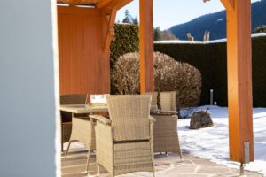 in Garmisch-PartenkirchenYou can already see the St. Martinshütte from Garmisch. It is located at an altitude of 1040 meters on the Kramer and offers a wonderful panoramic view of the region’s peaks. This beautifully situated restaurant can be reached in an hour’s walk from the Bayernhalle starting point. In winter, you can avoid the descent with a sledge, as the ascent is also a toboggan run.