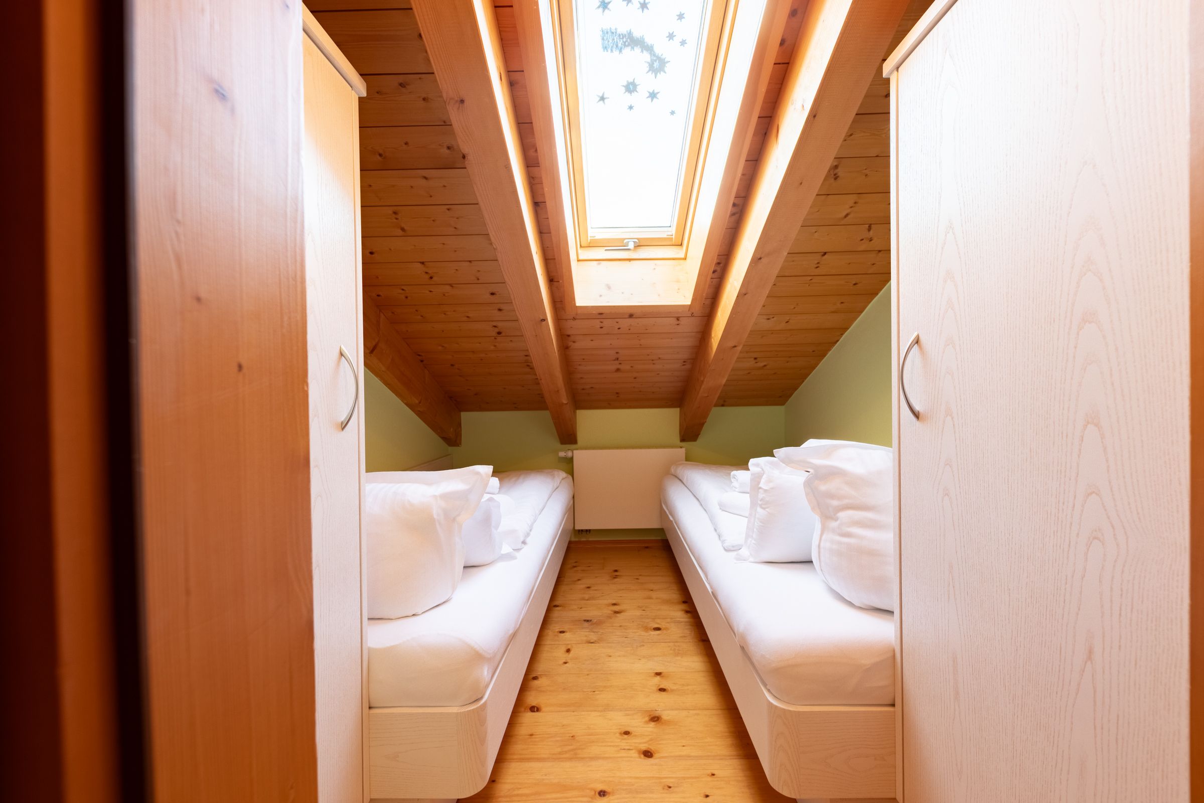 A private parking space directly in front of the house ensures easy arrival and stress-free parking. On the ground floor, a shared terrace is available for all guests to enjoy – an inviting spot to soak up the sun on warm days or to wind down in the evening with a glass of wine.