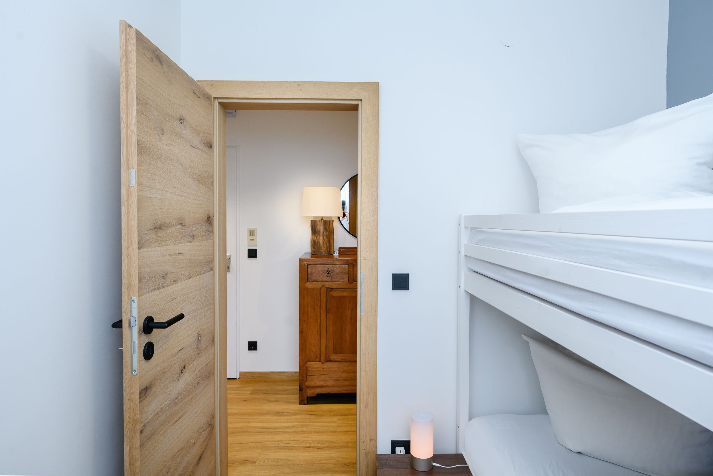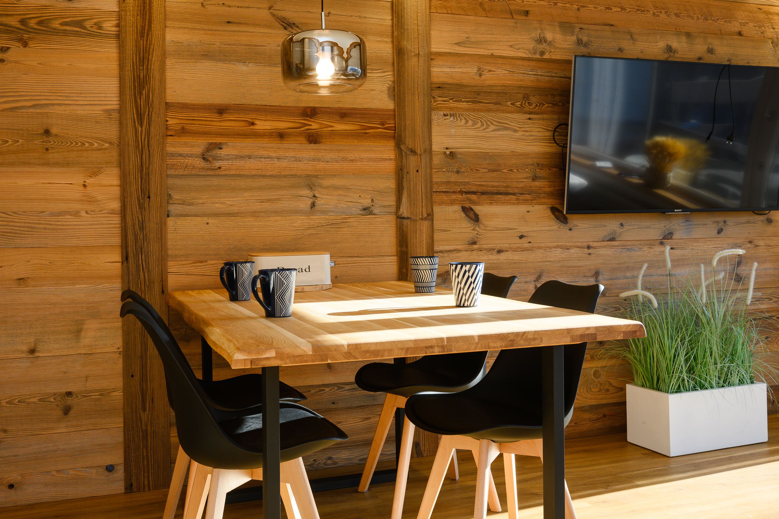 Of course, you will also find seating for up to four people in the dining area. The open kitchen is modern and equipped with all necessary kitchen utensils: a ceramic hob, an oven, and of course a kettle and toaster.
