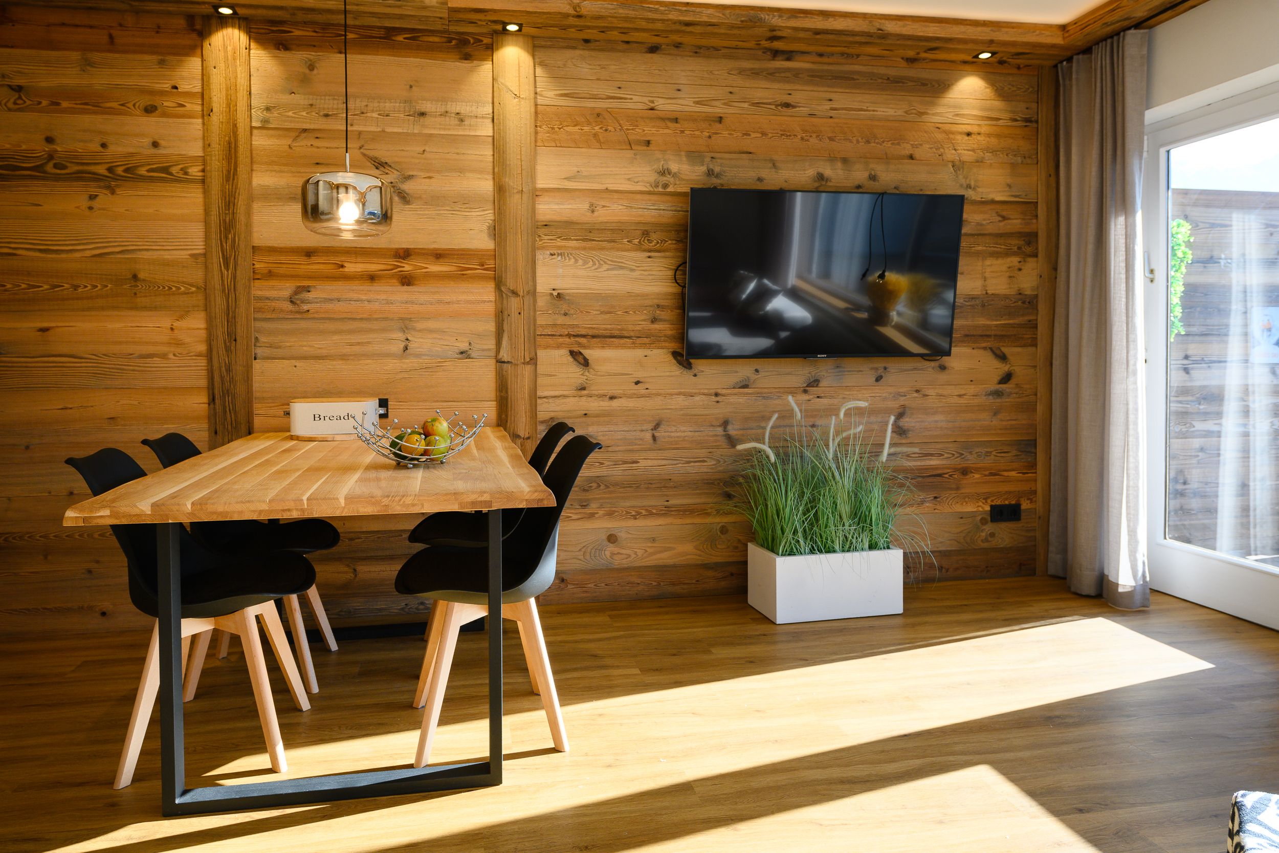A bright living and dining area offers space for up to four pe..Read moreople and invites you to spend cozy hours. A couch, which can be converted into sleeping accommodation for two people in a few simple steps, is at your disposal. Of course, there is also a TV in the apartment. On one of our many sunny days, the get-together gladly shifts to the south-facing balcony - of course with a magnificent view of the surrounding mountains! Already at breakfast you will feel like being on vacation!